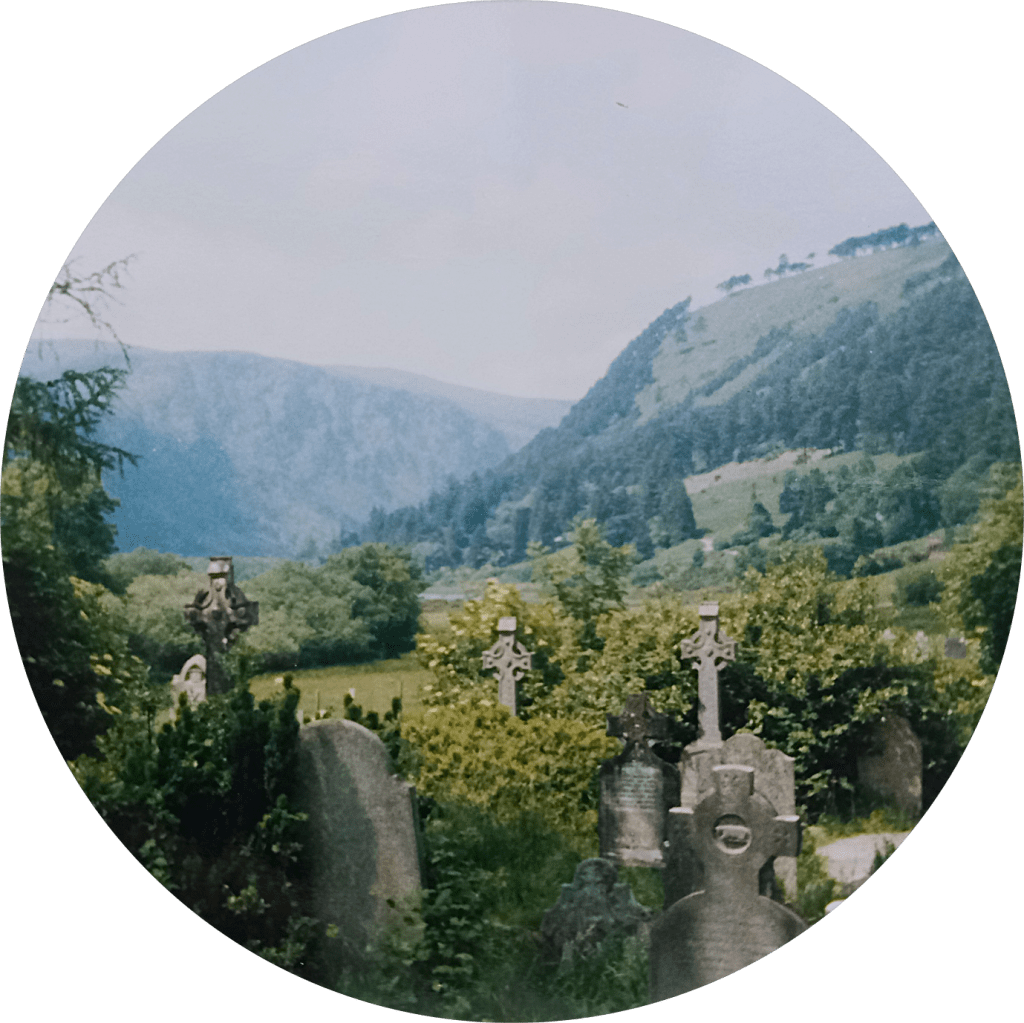 Glendalough, Wicklow Mountains National Park; cemitério com vista para o vale e o lago, 1989, pela minha mãe © All Rights Reserved.